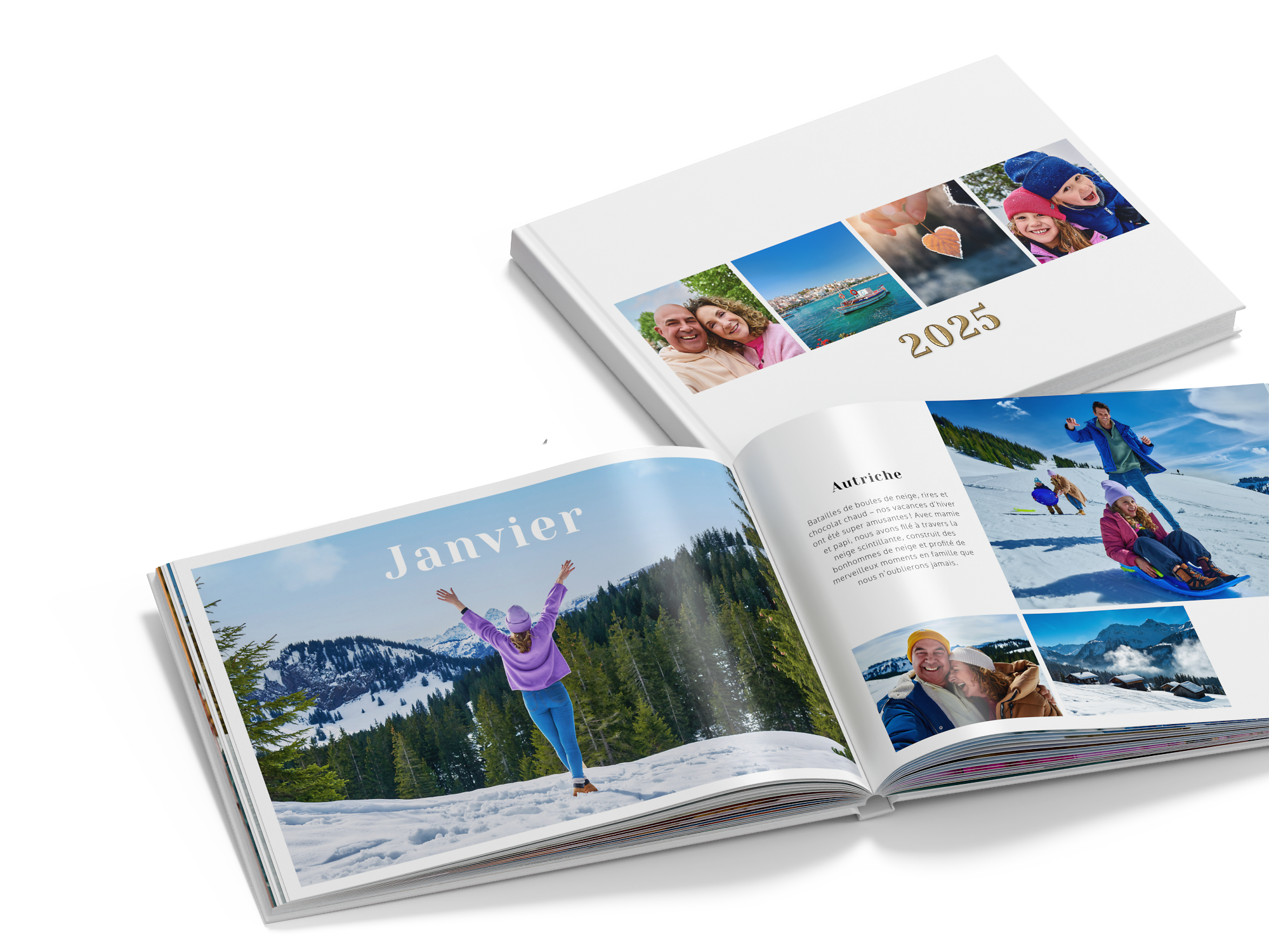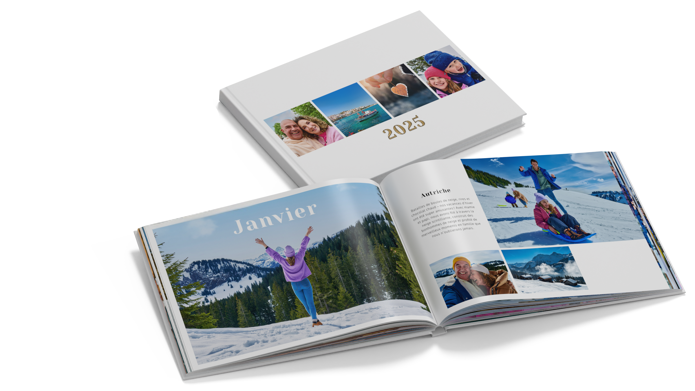 Faites votre sélection parmi notre gamme de modèles et mise en pages, dans lesquels il ne vous reste plus qu'à y glisser vos photos.